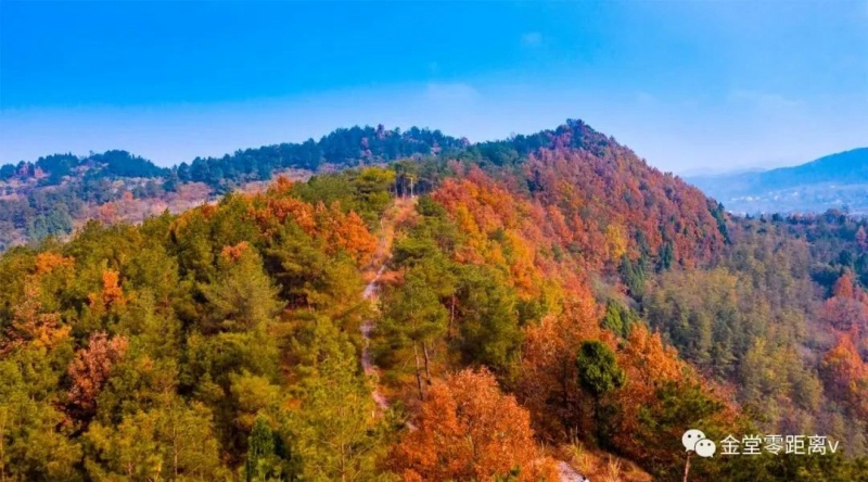 金堂长梁子徒步道的秋天彩林是成都近郊一道美丽的风景线。