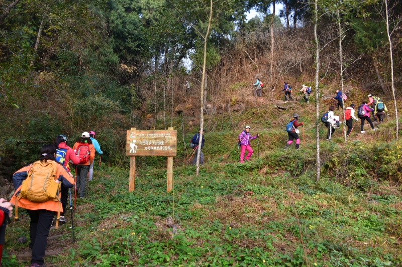 这条线路位于金堂县背后的大山中,山上植被茂密,风景美如画,修建了无数条由小道组合而成的登山步道.