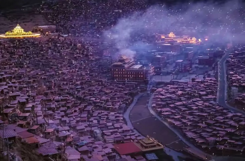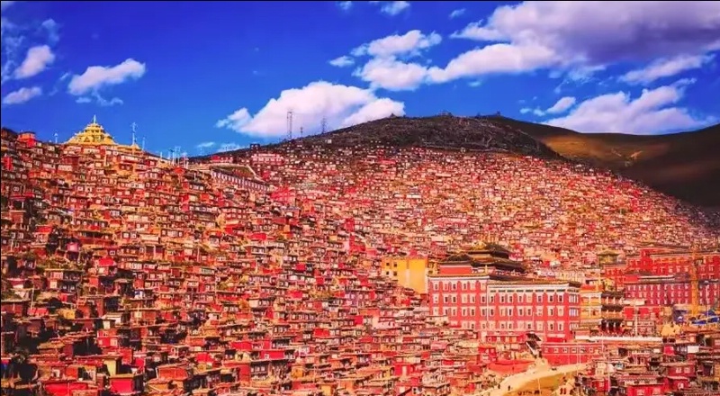 成千上万连绵数公里的山谷布满了密密麻麻的小木棚屋,是喇嘛和觉姆(尼姑)的住处。