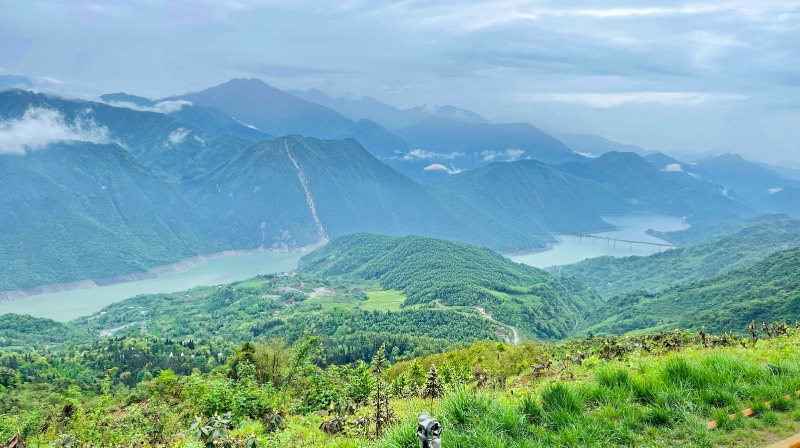 全景视野:俯瞰紫坪铺水库,晴天可远眺群山,山水同框壮阔如画。