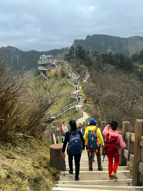 同时全程乘坐两段往返索道,直达西岭山巅,远眺群山连绵不绝,